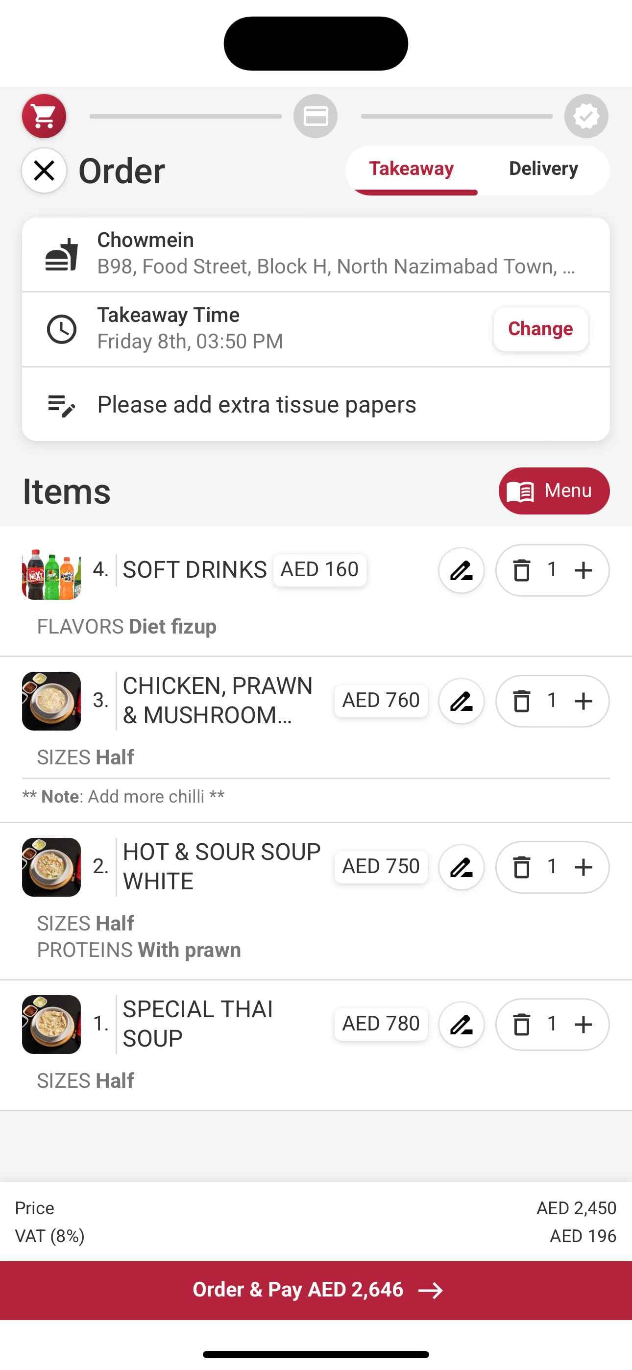 Take the flavor home with our convenient takeaway service. Browse our menu, place your order, and savor your favorite dishes wherever you are.